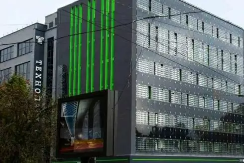 Солнечная электростанция площадью 1620 квадратных метров находится на семиэтажном здании центрального офиса ОККО. Она состоит из 1000 панелей на крыше и фасаде.