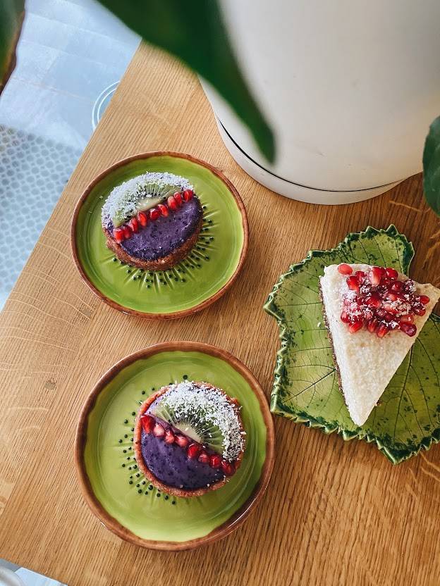 Цены: капучино – 70 грн, соленые вафли – 190 грн, кешью-кейк – 110 грн, смузи-боулы – 150 грн, сендвичи – 150 грн, чиа-пудинги – 120 грн.