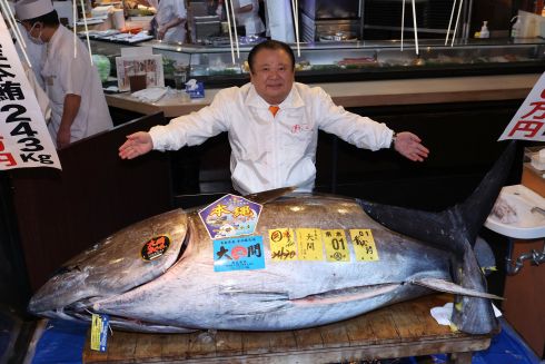 Фото: Кійоші Кімура позує з тунцем у ресторані Sushi Zanmai, Токіо, 5 січня 2026 року (Tosei Kisanuki / Yomiuri / The Yomiuri Shimbun via AFP)