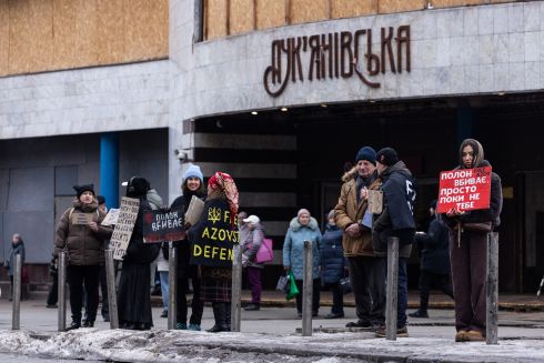 Фото: Акція за звільнення українських військовополонених біля станції метро «Лук’янівська», 15 лютого 2026 року (Daniel Yovkov / Hans Lucas / Hans Lucas via AFP)