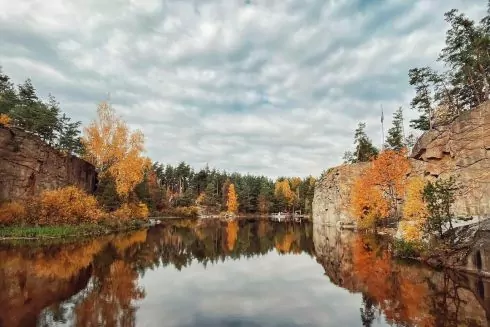 Когда-то здесь добывали гранит, теперь это туристическая достопримечательность на расстоянии около 100 км от Киева. Туристы приезжают сюда ради свежего лесного воздуха и чистой воды, которая в свое время затопила дно карьера.