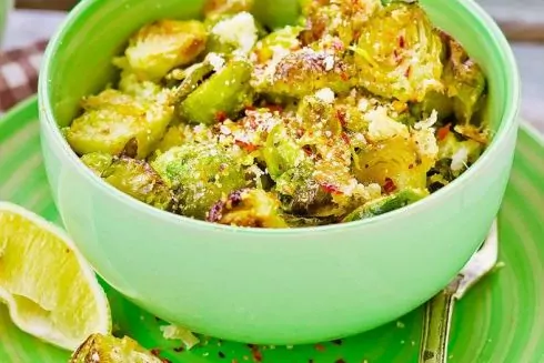 - Смешать брюссельскую капусту, чеснок, оливковое масло, бальзамик и посолить