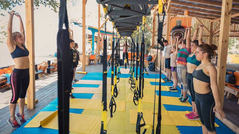 Также к недавно стартовавшим в Closer тренировкам к осени обещают добавить TRX. Подвесят их просто на танцполе. Рассчитаны они на 12-15 человек.