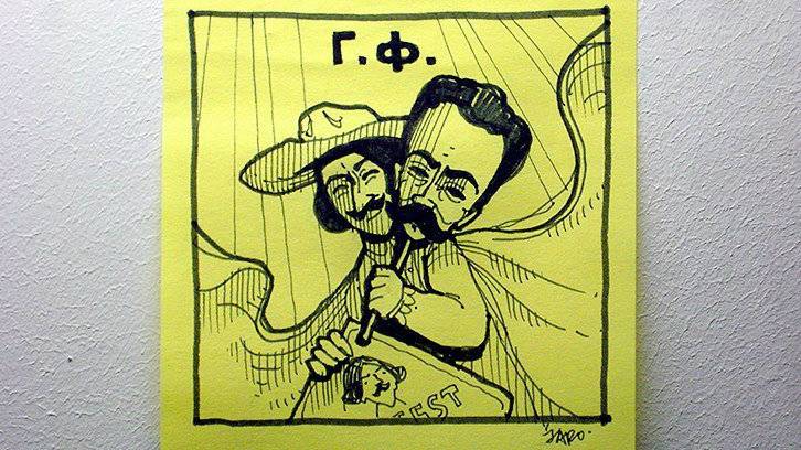 85 картинок нарисовал Ярослав, а идеи собирали все вместе. Размеры мини-артбука - 10 на 10 сантиметров, слева - чистые страницы, справа - иронические комиксы о парадоксах Ивано-Франковска, а посередине - карандаш, чтобы рисовать собственные работы.