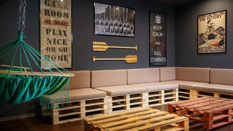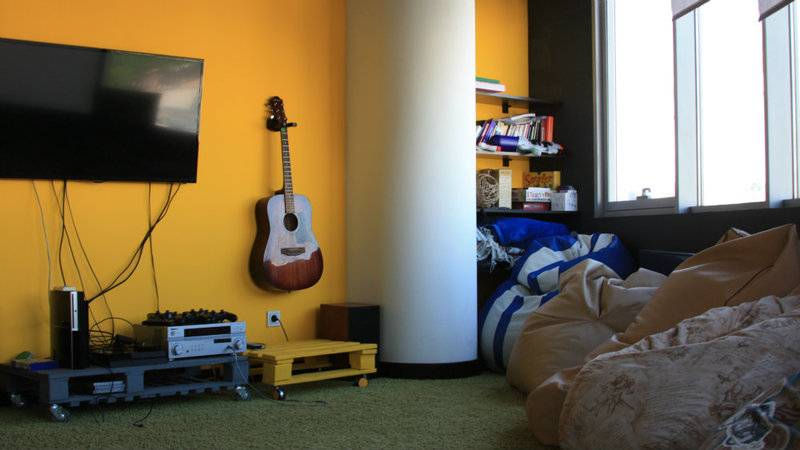Две комнаты для переговоров, игровая комната с приставками play station, настольными играми, книгами. Здесь же вы можете поиграть на гитаре или синтезаторе. В летнее время работает терраса с шикарным видом на город.