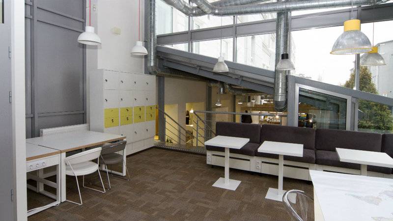 Также есть фотостудия, 2 лаунж зоны, кухня с чаем (не из пакетиков), кофе и печеньками, гардероб с закрывающимися шкафчиками.