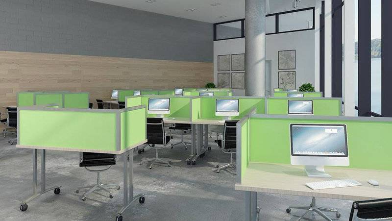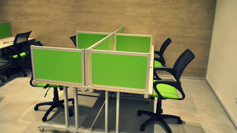 Пространство коворкинга занимает площадь 125 м2 и рассчитано на 31 рабочее место в open space. Каждое место огорожено, имеет широкий стол с розетками и удобное кресло. Для работы есть wi-fi, а также принтер и сканер.