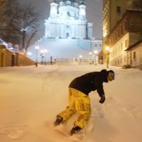 Видео дня: на Андреевском спуске катаются сноубордисты