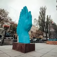 Возле снесенного памятника Ленину в Киеве появился арт-объект в виде синей руки