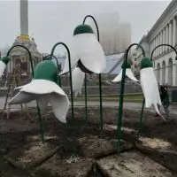 На Майдане установили подснежники из бетона. Это подарок к 8 марта от Киевзеленстроя