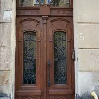 Фото. В исторической части Львова заменили входную деревянную дверь на белую из стеклопакета