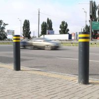 Фото. На Большой кольцевой установили первые защитные столбики на остановке общественного транспорта