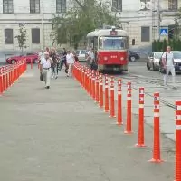 Фото. Возле остановки трамваев на Подоле установили делиниаторы на месте стихийной парковки