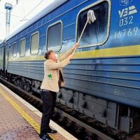 Фото дня: датский журналист самостоятельно помыл окно в поезде «Укрзалізниці»