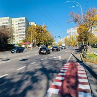 Фото. На Соломенке сузили автомобильную полосу и обустроили вместо нее велодорожку