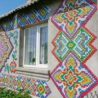 Фото. Житель села на Волині виклав на своєму будинку орнамент із пластикових кришечок, які збирав 16 років