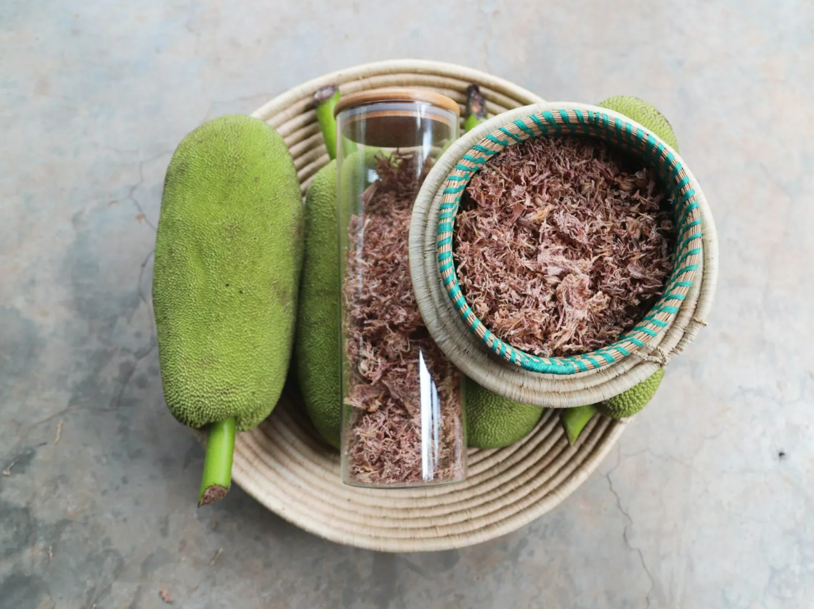 Інший замінник м’яса створили із найбільш смердючих плодів у світі – джекфрута. Їх збирають та зневоднюють, а далі експортують у Європу у якості інгредієнту для веганських страв. Насправді за використання джекфрута у створенні альтернативи м’ясу взялося вже чимало компаній – Jack & Annie, Upton’s Naturals, Karana, The Jackfruit Company тощо. Але досі його ніхто не сушив. У дегідратованому інгредієнті мало білка (1,7 г на 100 г), але великою перевагою є вміст клітковини – 8,1 грамів.