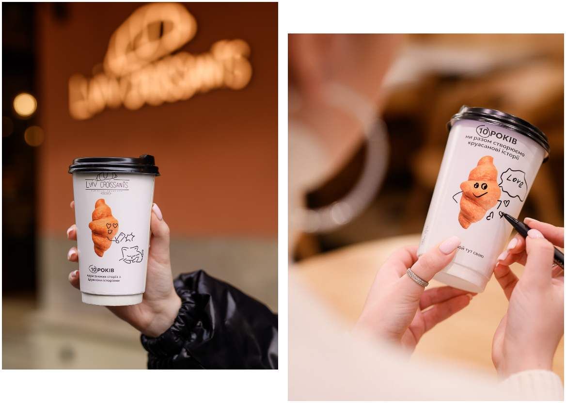 “Lviv Croissants для наших Гостей – це значно більше, ніж просто заклад, так само як і стаканчики – це більше, ніж просто посуд, – ділиться співвласник компанії Юрій Загродський. – Це і нагадування про важливі сенси, і ті самі слова в потрібний момент, і перша усмішка за день. Тому з нагоди 10-річчя ми вперше вирішили запропонували нашим гостям стати співавторами наших стаканчиків і намалювати свої круасанові моменти”