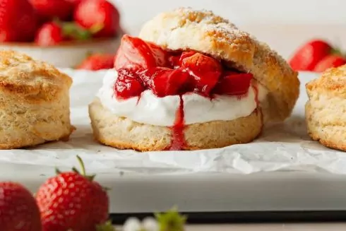 Шорткейк — це британський десерт, який традиційно складається з шарів крихкого, ніжного тіста з прошарками крему з вершків або йогурту та свіжих ягід, найчастіше полуниці. Тісто для такого десерту можна як приготувати власноруч, так і взяти готове — наприклад, чудово підійде улюблене пісочне печиво.