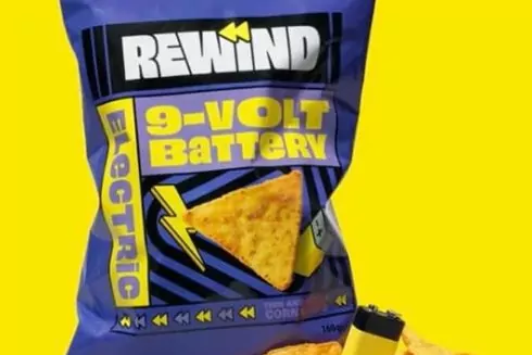 Компанія Rewind випустила лімітовану серію кукурудзяних чіпсів зі смаком 9-вольтових батарейок.