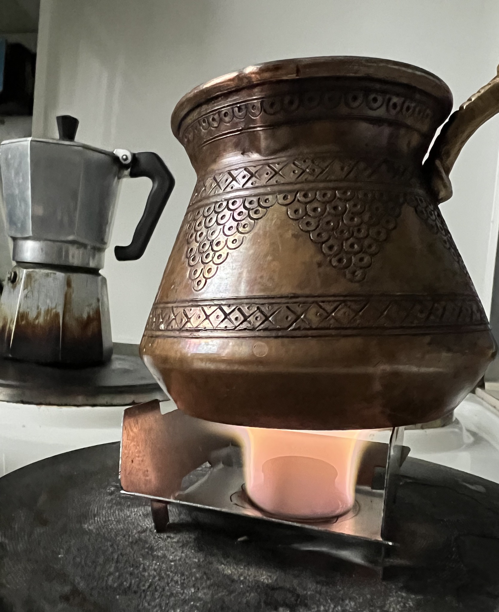 Коли світло вимкнули вперше, ми ще не запаслися міні-плиткою на газу, але кави хотілося.До локдауну ми часто ходили в гори та придбали для таких мандрів похідну пічку-трісківницю. Я знайшов у гардеробній цю пічку, дістав запас дерев'яних паличок для морозива — і на них зварив каву.