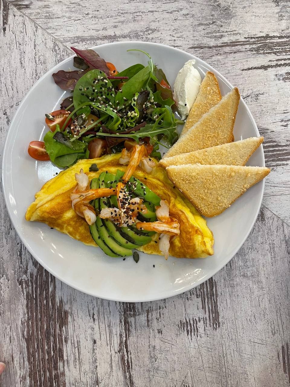 У меню – салати і сніданки all day: солоні круасани, омлети, сирники та млинці.Із десертів подають декілька видів чизкейків та круасани з різними начинками: наприклад, можна спробувати круасан із грушею та дорблю або чизкейк «Полуничне морозиво». Також є тарти, тістечка, макаронс.Ціни: круасан із хамоном та в'яленими томатами – 195 грн, салат «Цезар» з креветкою – 190 грн, капучино – 60 грн, фільтр – 50/70 грн, лимонад яблуко-лемонграс – 95 грн, круасан малина і крем-сир – 85 грн, чизкейк «Нью-Йорк» – 110 грн, коктейль Clover club – 190 грн, Полуниця-Лічі Sour – 220 грн