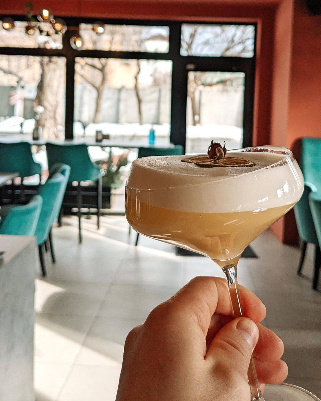 А крім кави, пропонують веганські напої, авторські чаї, матчу, фреші, лимонади.Ціни: запечені солоні сирники – 125 грн, гарбузовий крем-суп – 135 грн, медальйони з телятини та трюфельним пюре – 285 грн, паста з лососем – 185 грн, сендвіч з ростбіфом – 150 грн, фільтр-кава – 45 грн, веган кава – 75 грн, матча-лате – 75 грн, коктейль Lady Killer – 205 грн, коктейль Pornstar – 185 грн