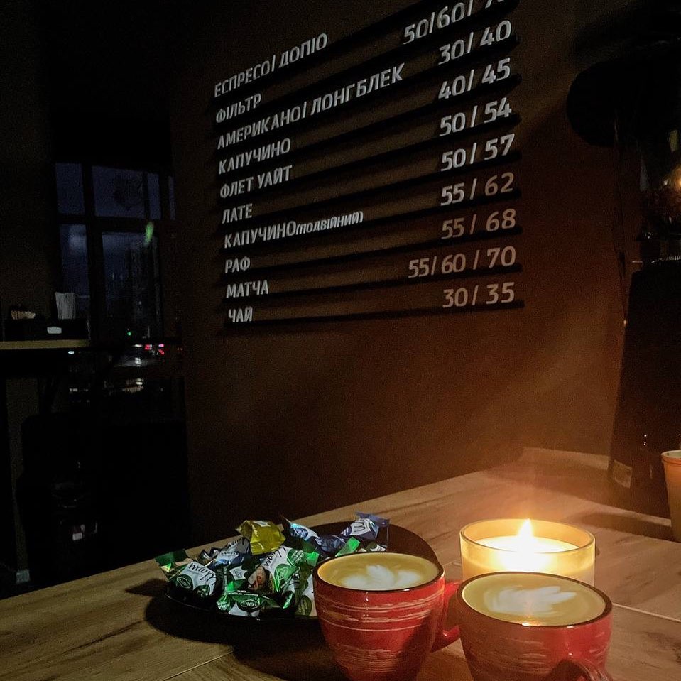 Адреса: Оболонський проспект, 1 Режим роботи: понеділок – п’ятниця з 8:00 до 21:00, субота та неділя з 9:00 до 21:00 Ціни: капучино – 40 гривень, раф – 55 гривень, гарячий шоколад – 45 гривень