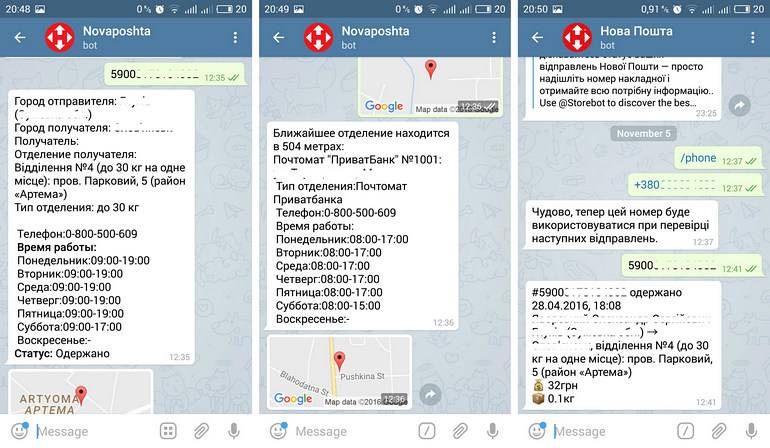 За допомогою цього бота можна відстежувати посилки таких служб, як «Нова пошта», «Делівері», Meest-Group і «Укрпошта».
