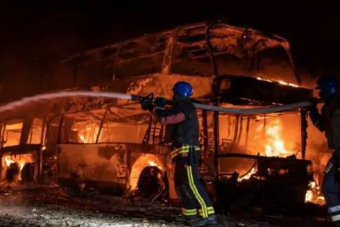Відомо, що в Солом’янському районі на місці падіння уламків спалахнули 4 автобуси та гараж загальною площею 200 кв. м. Займання ліквідували.