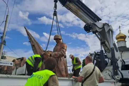Монумент демонтували, бо через місце, де він стояв, будуть прокладати нову дорогу — з’їзд із новозбудованого мосту. Демонтаж пам’ятника погодили з Міністерством культури та інформаційної політики.