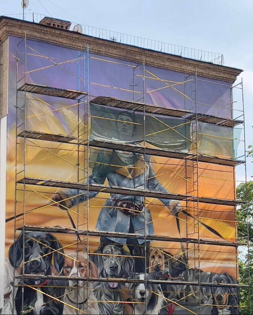 У Шевченківському районі Києва створюють мурал, присвячений зоозахисниці з Ірпеня Анастасії Тихій. Її світлина із собаками під час евакуації на початку повномасштабного вторгнення облетіла весь світ.