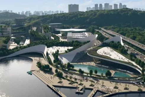 Архітектурне бюро AIMM опублікувало проєкт Музею води, аквапарку й дослідницького центру на березі Дніпра, який планують реалізувати в Києві після закінчення війни.