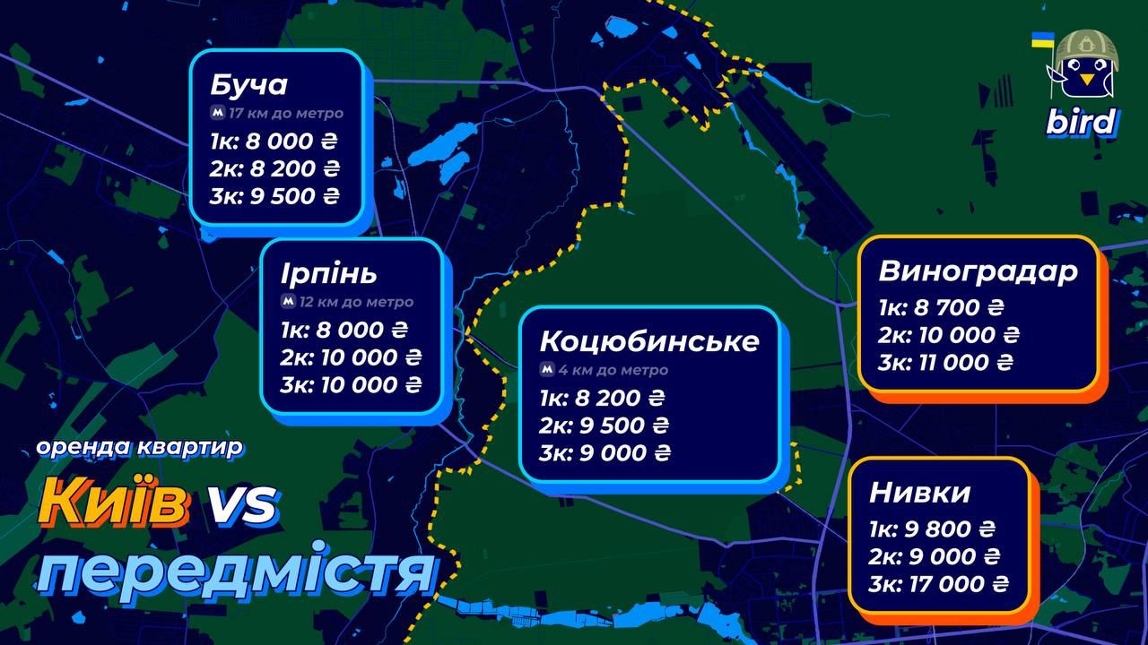Яка вартість оренди квартир в Києві та передмістях – статистика bird