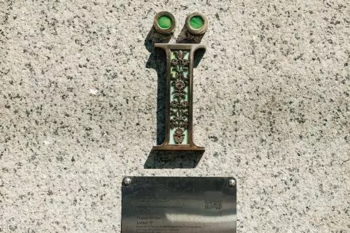 До елементів скульптурки «Ї» долучили скалки вітражів кампусу КНУ, які постраждали після ракетного обстрілу 31 грудня 2022 року і вже не підлягають відновленню. Тепер ці шматочки кольорового скла отримали нове життя. Скульптором є Юрій Білявський.