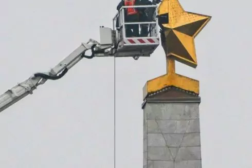 Радянська символіка розташовувалася на висоті 42 метрів. Для її демонтажу залучали важку техніку.