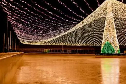 На святковій локації відвідувачів чекає не тільки ковзанка, а і фудкорт зі смаколиками й напоями, лабіринт ілюмінацій, крижана гірка та інші активності.
