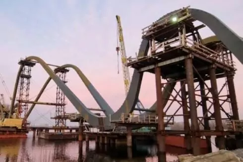 Він запевняє, що будівельники вже завершили складання несучої металевої конструкції мосту.