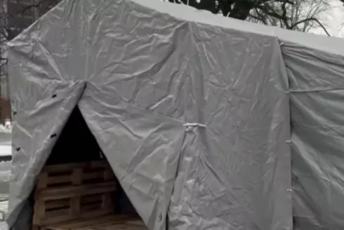 Через сильні морози біля приміського залізничного вокзалу «Дарниця» відкрили намет для обігріву всіх, хто цього потребує.