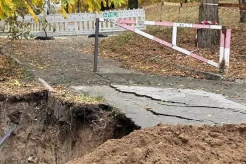 Унаслідок діяльності забудовника біля парку відбувся зсув грунту та обвал однієї із центральних алей парку в будівельний котлован.