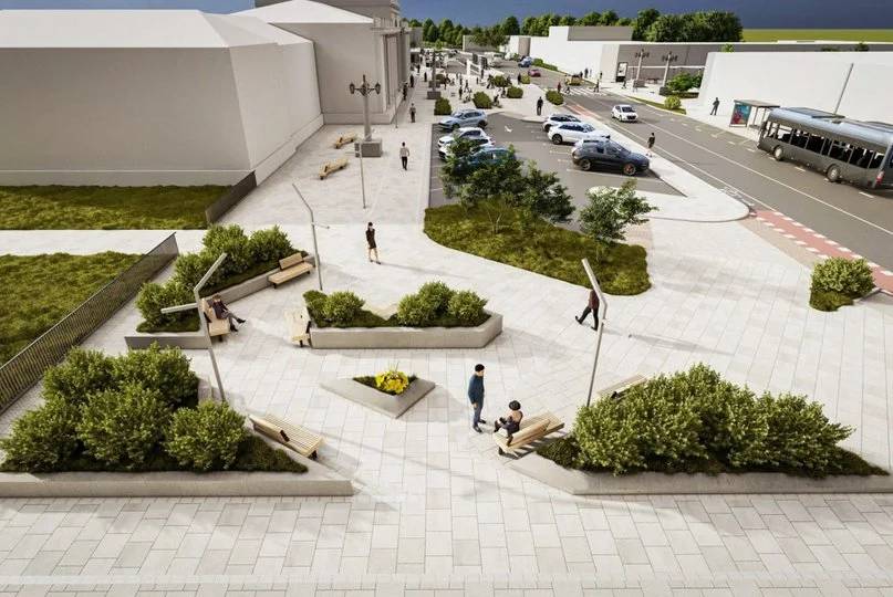 Планується також значне озеленення, встановлення лав для відпочинку та сухого фонтану.