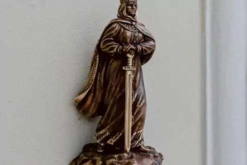 У межах проєкту “Шукай!” на Михайлівській площі відкрили мініскульптуру княгині Ольги з мечем.