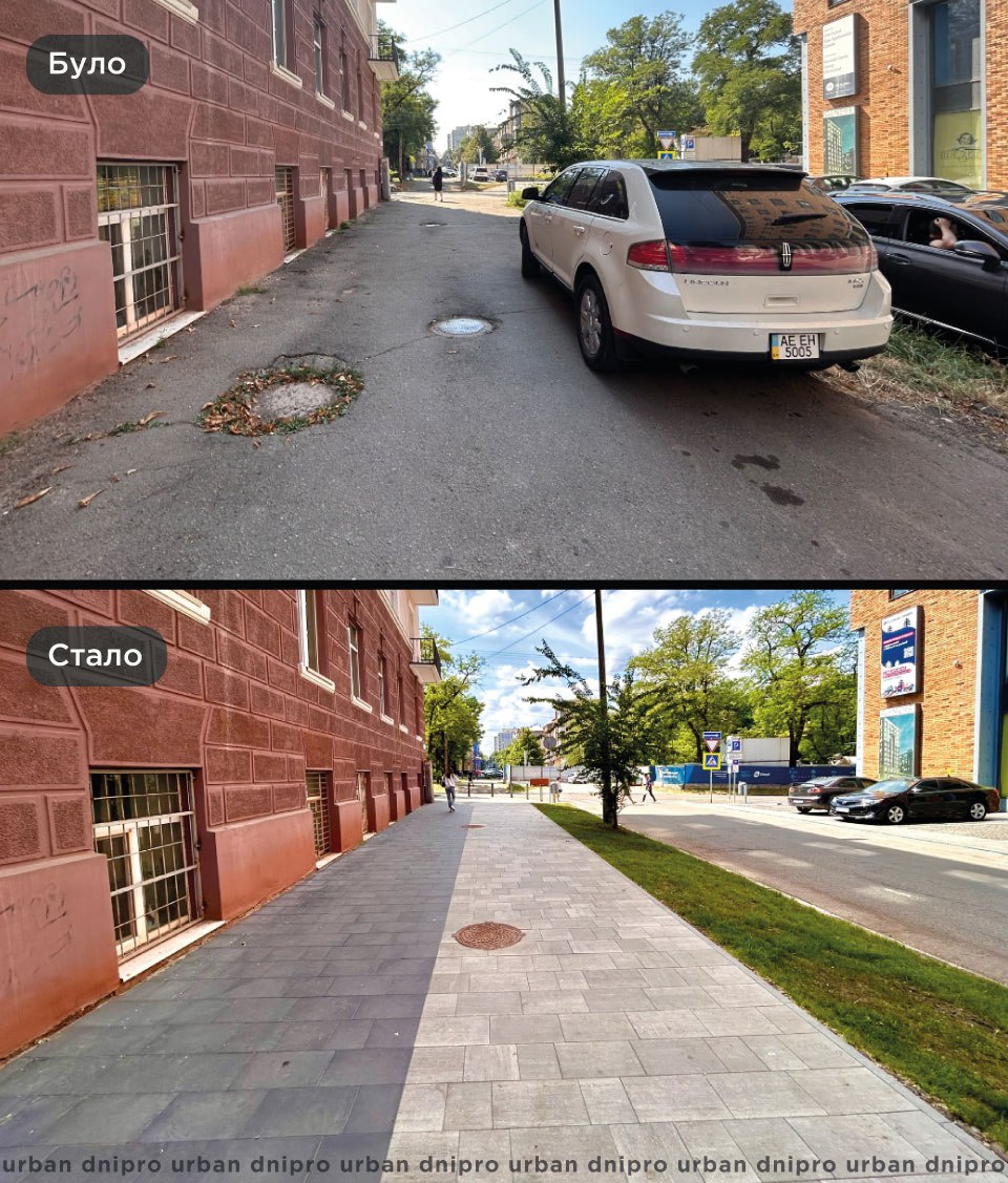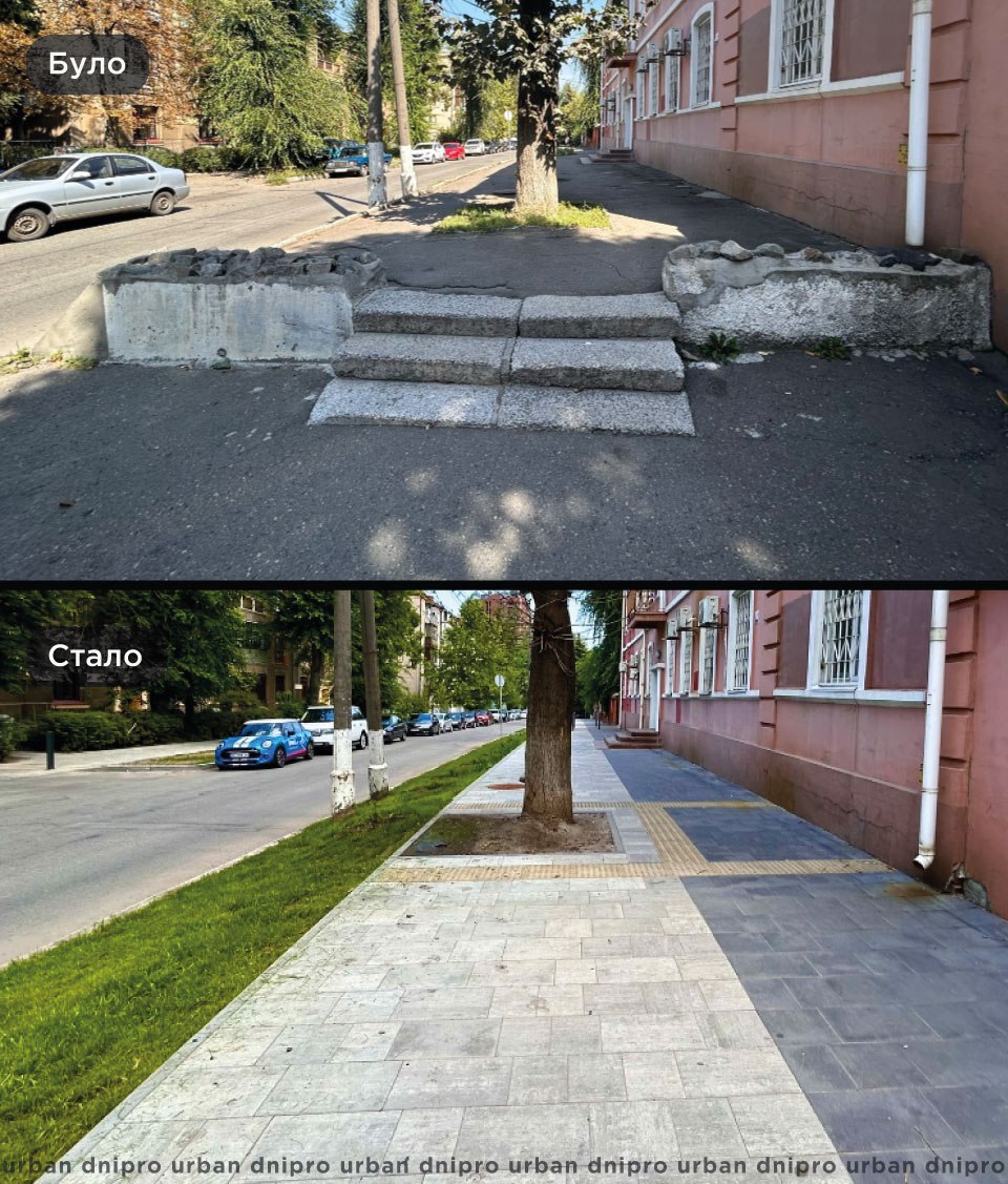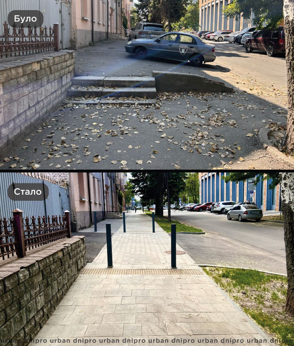 Крім того, вулицю зробили безбарʼєрною. Всі проїзди виконали в тротуарній плитці, а замість сходів влаштували пологі ухили.