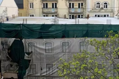 Він також нагадує про пам'ятку на Андріївському узвозі, 24, де вітер зірвав фрагмент такої завіси. Тоді виявили, що на місці будівлі звели новобудову. За такою ж схемою зараз демонтують пам'ятку архітектури на вулиці Хрещатик, 48.
