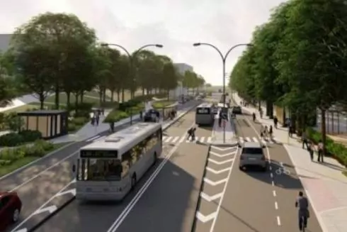- Створять зупинки громадського транспорту “острівного” типу шириною 3,0 м та довжиною посадкового майданчика 35 м, які будуть розташовані між смугою громадського та приватного транспорту;