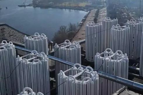 Водночас для системи опалення на даху будинку побудований окремий теплопункт з тепловими насосами, що працюють навіть при мінусових температурах.