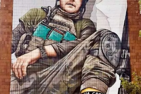 У Дніпровському районі Києва на стіні багатоповерхового будинку з’явився мурал, присвячений військовому.