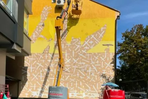 Новий мурал від Володимира Манжоса з'явиться на Подолі біля бізнес-центру Domino. На тій самій будівлі вже розміщений мурал Victory, створений художником у жовтні 2022 року.