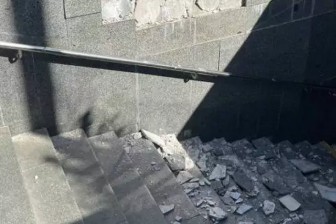 Плитка відвалилася від частини стіни і впала впала на сходи. Інцидент стався під час руху людей, проте їм вдалося уникнути травм.