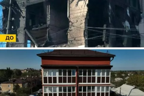 На Київщині відновили багатоповерхівку, пошкоджену під час артобстрілу у березні 2022 року.